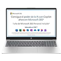 HP 15-fd0261ns - Ordenador portátil de 15.6" FHD (Intel N100, 4GB RAM, 128GB UFS, Intel UHD, Windows 11) Plata - Teclado QWERTY Español - Incluye Microsoft 365 Personal 12 Meses